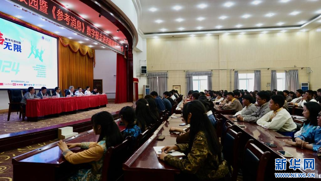 20日,“新聲無限——2024年新華社進校園活動”在西藏藏醫(yī)藥大學舉行。新華社參考消息報社向西藏藏醫(yī)藥大學贈閱了《參考消息》數(shù)字報。參考消息報社總編輯陶德言,新華社西藏分社分黨組成員、副社長林建楊和西藏藏醫(yī)藥大學黨委書記、副校長鞠明兵致辭,西藏藏醫(yī)藥大學黨委委員、副校長于廣琮主持活動儀式,參考消息報社專題室主任田寶劍 與到場師生進行面對面分享交流。
