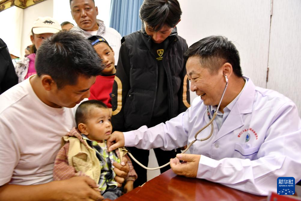 7月23日,南京醫(yī)科大學(xué)附屬兒童醫(yī)院心胸外科主任戚繼榮(左)在墨竹工卡縣為兒童體檢。新華社記者 張汝鋒 攝