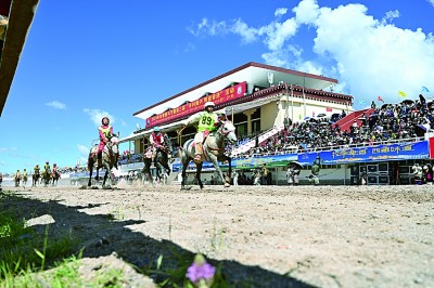 據(jù)了解,今年主辦方從青海等地邀請(qǐng)了特色高原馬種前來(lái)展示?;顒?dòng)現(xiàn)場(chǎng),記者看到,騎手們身著民族服飾,英姿颯爽;駿馬裝飾五色綢帶,躍躍欲試;觀眾扶老攜幼,笑逐顏開(kāi)。今年的賽馬節(jié)還新增了馬上刀術(shù)、馬上烏爾朵、騎馬射擊、騎馬拾哈達(dá)等四項(xiàng)賽馬競(jìng)技活動(dòng)。