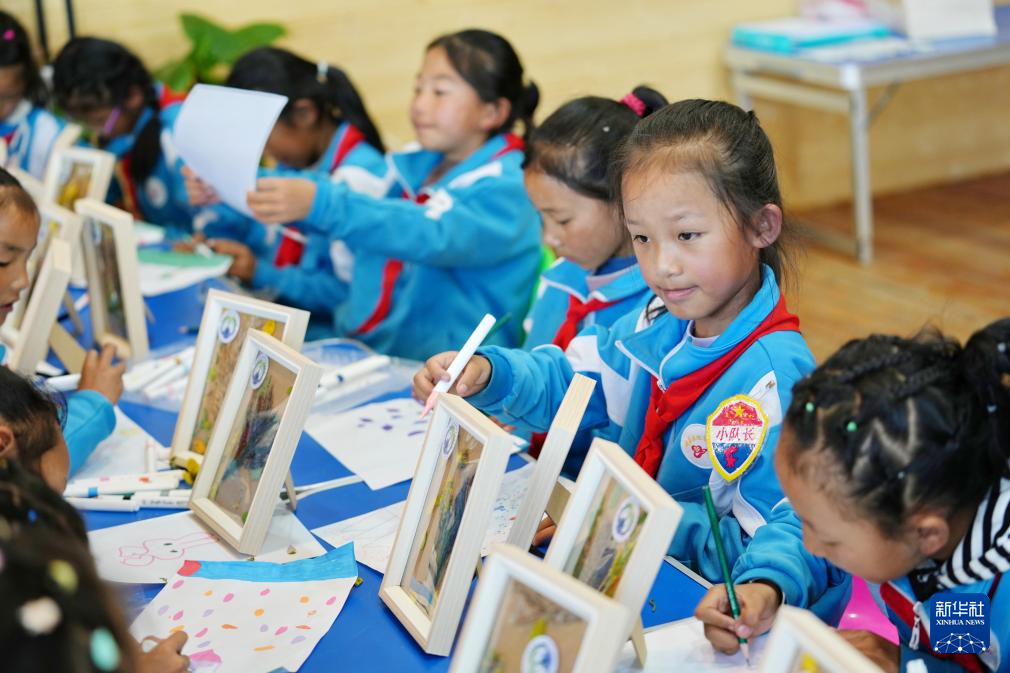 8月15日,拉魯小學的學生在拉魯濕地國家級自然保護區(qū)管理局科普小教室里進行生態(tài)主題繪畫。