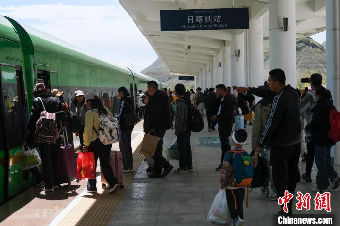 8月16日,西藏拉日鐵路通車十周年。作為連接拉薩與日喀則間的高原城際鐵路,十年來(lái),拉日鐵路運(yùn)送旅客超1429萬(wàn)人次,運(yùn)送貨物超524萬(wàn)噸。圖為16日下午,乘客在拉日鐵路日喀則站搭乘C888次高原復(fù)興號(hào)動(dòng)車組前往拉薩。中新社記者 江飛波 攝