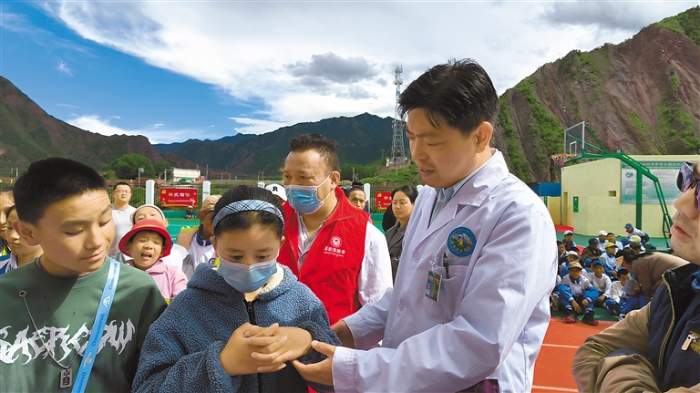 圖為青島援藏組“山海情·紅馬甲”醫(yī)療志愿者服務(wù)隊(duì)為日喀則市桑珠孜區(qū)群眾義診。記者 李洲 攝