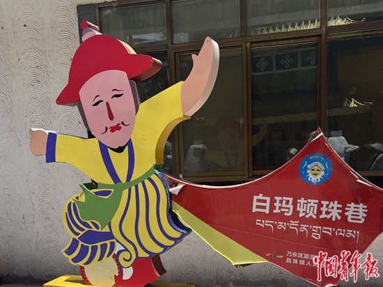8月6日,西藏自治區(qū)山南市乃東區(qū)昌珠鎮(zhèn)扎西曲登社區(qū),以藏戲傳承人名字命名的街巷。白瑪頓珠是雅礱扎西雪巴藏戲的傳承人,成功恢復(fù)了中斷20多年的雅礱扎西雪巴藏戲表演技藝,對藏戲藝術(shù)的傳承和發(fā)展作出了重要貢獻(xiàn)。中青報(bào)·中青網(wǎng)記者 余冰玥/攝