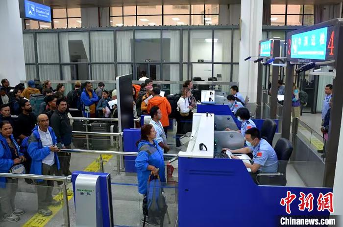 圖為吉隆口岸移民管理警察正在驗(yàn)放滯留出入境旅客。賀東 攝
