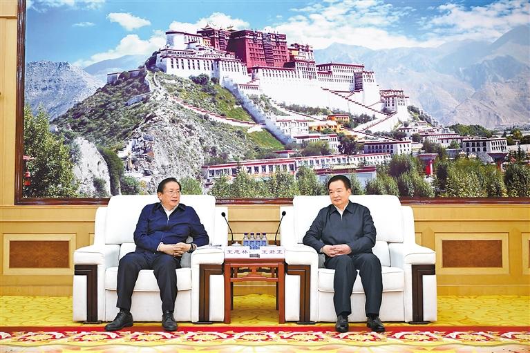 王君正代表自治區(qū)黨委、政府對(duì)湖北省黨政代表團(tuán)來藏考察表示歡迎。他說,在深入貫徹落實(shí)黨的二十屆三中全會(huì)和第四次對(duì)口支援西藏工作會(huì)議精神之際,湖北省黨政代表團(tuán)來藏考察、推進(jìn)援藏工作,充分體現(xiàn)了湖北省委、省政府貫徹落實(shí)習(xí)近平總書記關(guān)于西藏工作的重要指示和新時(shí)代黨的治藏方略的自覺性和堅(jiān)定性、責(zé)任感和使命感。湖北作為中部大省,近年來深入貫徹落實(shí)習(xí)近平總書記關(guān)于湖北工作的重要講話、重要指示批示精神和黨中央決策部署,圍繞“五個(gè)功能定位”,推動(dòng)經(jīng)濟(jì)社會(huì)快速發(fā)展,為中國(guó)式現(xiàn)代化建設(shè)作出了積極貢獻(xiàn)。西藏工作在黨和國(guó)家工作大局中具有十分重要的戰(zhàn)略地位。自治區(qū)黨委不折不扣貫徹落實(shí)習(xí)近平總書記為西藏明確的“穩(wěn)定、發(fā)展、生態(tài)、強(qiáng)邊”四件大事,推動(dòng)各項(xiàng)事業(yè)不斷取得新成效,呈現(xiàn)出一派欣欣向榮的良好景象。今年是全國(guó)對(duì)口支援西藏30周年,30年來湖北省委、省政府始終站在黨和國(guó)家戰(zhàn)略全局的高度,認(rèn)真貫徹落實(shí)黨中央關(guān)于援藏工作的決策部署,緊扣受援地需求推進(jìn)各項(xiàng)工作落地落實(shí),為西藏長(zhǎng)治久安和高質(zhì)量發(fā)展作出了積極貢獻(xiàn),西藏各族人民感恩在心。當(dāng)前,西藏正處于建設(shè)社會(huì)主義現(xiàn)代化的關(guān)鍵時(shí)期,希望兩省區(qū)完整準(zhǔn)確全面貫徹新時(shí)代黨的治藏方略,錨定在國(guó)家全局中的戰(zhàn)略地位,勇?lián)姑?、團(tuán)結(jié)奮斗,攜手為強(qiáng)國(guó)復(fù)興偉業(yè)作出更大貢獻(xiàn)。深化交流合作,加強(qiáng)發(fā)展戰(zhàn)略對(duì)接,強(qiáng)化特色優(yōu)勢(shì)產(chǎn)業(yè)融合發(fā)展,揚(yáng)長(zhǎng)避短、優(yōu)勢(shì)互補(bǔ),推動(dòng)兩地人民共同富裕。堅(jiān)持以鑄牢中華民族共同體意識(shí)為主線,進(jìn)一步推動(dòng)對(duì)口支援工作走深走實(shí),鞏固教育、醫(yī)療等“組團(tuán)式”援藏成果,激勵(lì)更多優(yōu)秀干部人才參與社會(huì)主義現(xiàn)代化新西藏建設(shè)。