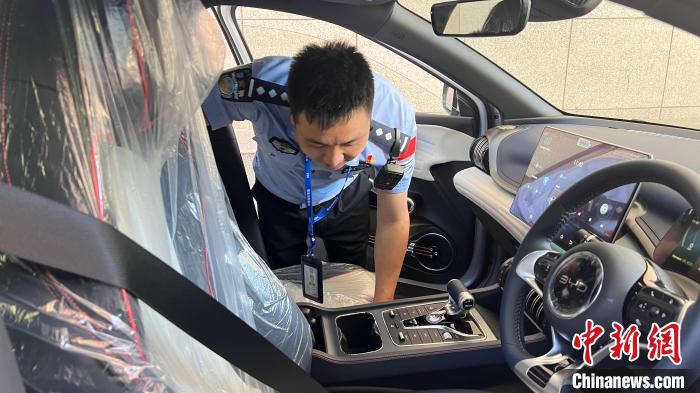 圖為吉隆出入境邊防檢查站執(zhí)勤二隊(duì)民警蔡生丁正在檢車出口車輛。姜磊 攝