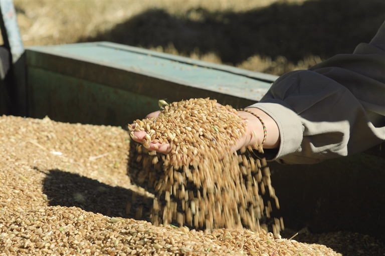 “我家共有92畝多的農(nóng)田,家里有三個(gè)勞力,我負(fù)責(zé)秋收,其余兩個(gè)外出務(wù)工,以前我們家秋收工作需要一個(gè)月多的時(shí)間,現(xiàn)在農(nóng)業(yè)機(jī)械化了,再也不用擔(dān)心秋收工作,聽說今年賣良種每斤有0.3元的補(bǔ)貼,準(zhǔn)備把自家10000斤良種賣掉,預(yù)計(jì)今年有56000多元的收入。”正在搬運(yùn)青稞粒的村民普瓊高興地說道。