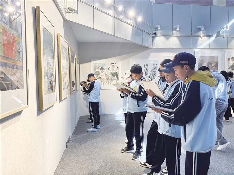 走進展廳,首先映入眼簾的是一幅幅色彩斑斕、構(gòu)圖精美的畫作。這些作品主題緊扣民族團結(jié)進步、鄉(xiāng)村振興、城市建設(shè)、民俗風情等,展現(xiàn)了各民族地區(qū)的新面貌、新變化、新發(fā)展。