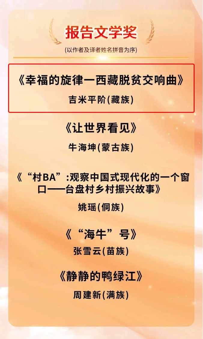 圖為第十三屆駿馬獎(jiǎng)長(zhǎng)篇小說(shuō)獎(jiǎng)和報(bào)告文學(xué)獎(jiǎng)獲獎(jiǎng)名單。(圖片來(lái)源于道中華微信公眾號(hào))