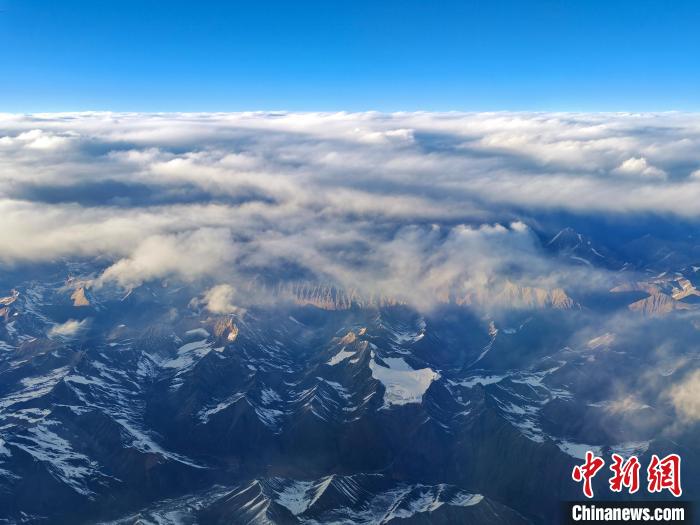 近日,中新網(wǎng)記者從云南昆明長(zhǎng)水國(guó)際機(jī)場(chǎng)乘機(jī)前往西藏自治區(qū)拉薩市,飛機(jī)穿過(guò)橫斷山脈,抵達(dá)雪域高原。望向窗外,沿途依次看到了玉龍雪山、南迦巴瓦雪山以及遠(yuǎn)遠(yuǎn)的念青唐古拉雪山等,還有很多小新也不知道名字的雪山,可謂實(shí)現(xiàn)了“雪山自由”。圖為11月13日,從飛機(jī)上遠(yuǎn)眺念青唐古拉雪山。記者 江飛波 攝
