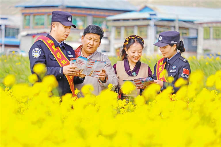 圖為帕里邊境派出所民警在田間地頭開展普法宣傳。記者 張宇 通訊員 白瑪倉覺 攝