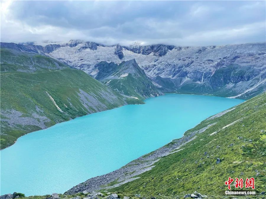 庫(kù)拉崗日冰川與白瑪林湖。中新社記者 趙朗 攝