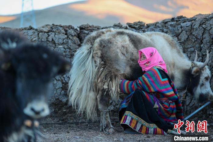 12月12日,西藏自治區(qū)那曲市安多縣帕那鎮(zhèn)牧民土巴卓瑪正準備擠牦牛奶。帕那鎮(zhèn)位于安多縣中部,是安多縣人民政府所在地,下轄3個村,3個居民委員會,12個自然村,7個居民小區(qū)。青藏鐵路、青藏公路貫穿全境,交通便利,牛羊成群,景色宜人。中新社記者 貢嘎來松 攝