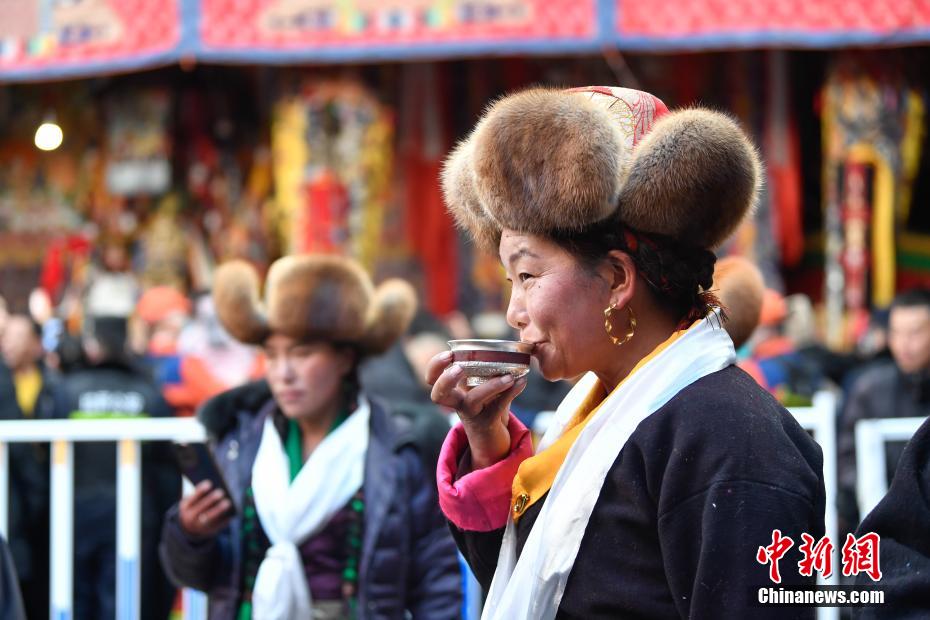 12月15日即藏歷十月十五日是藏族傳統(tǒng)的節(jié)日“白來日追”,俗稱“仙女節(jié)”、“白拉姆節(jié)”等。相傳藏傳佛教最高護(hù)法神之一班丹拉姆的女兒白拉姆,不顧母親的反對與赤尊贊私定終身,班丹拉姆一怒之下將赤尊贊趕到拉薩河南岸,規(guī)定二人僅每年的藏歷十月十五日相見。圖為一位藏族婦女品嘗青稞酒。
