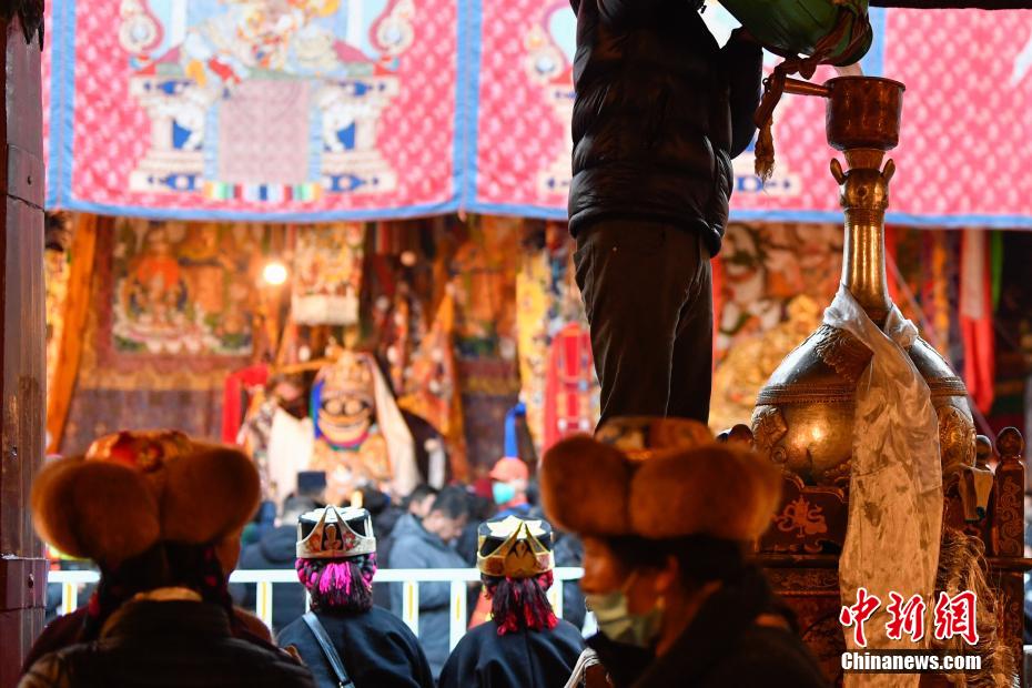 12月15日即藏歷十月十五日是藏族傳統(tǒng)的節(jié)日“白來日追”,俗稱“仙女節(jié)”、“白拉姆節(jié)”等。相傳藏傳佛教最高護(hù)法神之一班丹拉姆的女兒白拉姆,不顧母親的反對與赤尊贊私定終身,班丹拉姆一怒之下將赤尊贊趕到拉薩河南岸,規(guī)定二人僅每年的藏歷十月十五日相見。圖為工作人員將青稞酒倒入女神白拉姆像前的酒壇。