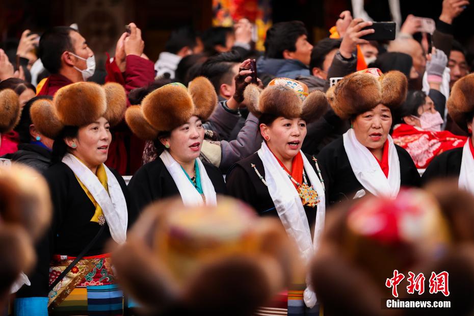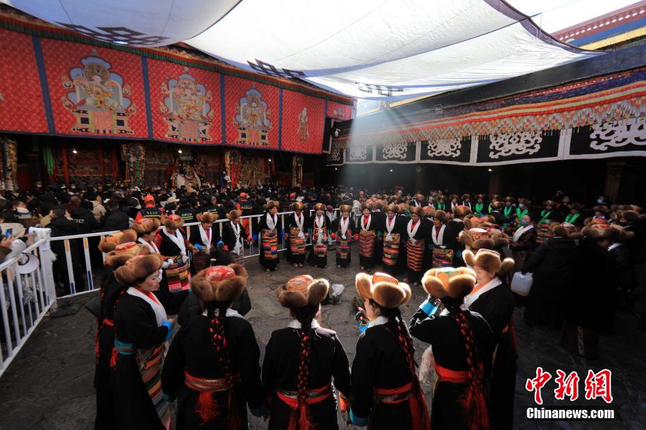 12月15日即藏歷十月十五日是藏族傳統(tǒng)的節(jié)日“白來日追”,俗稱“仙女節(jié)”、“白拉姆節(jié)”等。相傳藏傳佛教最高護(hù)法神之一班丹拉姆的女兒白拉姆,不顧母親的反對與赤尊贊私定終身,班丹拉姆一怒之下將赤尊贊趕到拉薩河南岸,規(guī)定二人僅每年的藏歷十月十五日相見。圖為身著民族服裝的信眾在大昭寺內(nèi)載歌載舞。
