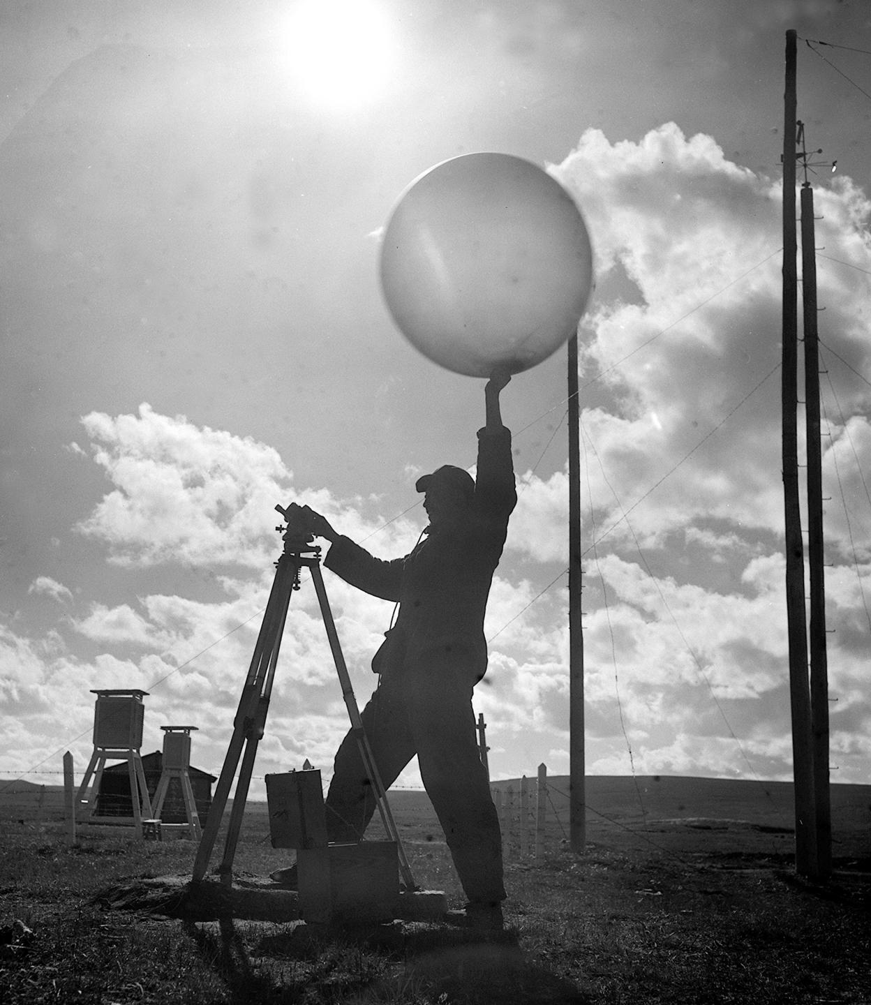 1964年,五道梁氣象服務(wù)站的工作人員放測風(fēng)氣球。在昆侖山里工作的氣象工作者,長期堅守工作崗位,為青藏公路安全運(yùn)輸提供了寶貴的氣象資料。