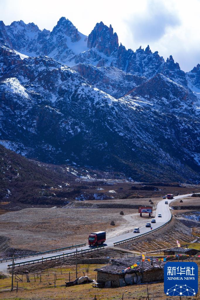 2024年11月1日,在四川省甘孜藏族自治州德格縣,車(chē)輛穿過(guò)雀兒山隧道后行駛在川藏公路上。新華社記者 沈伯韓 攝