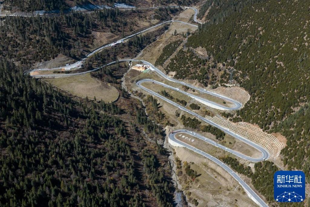 2024年11月1日在四川省甘孜藏族自治州德格縣拍攝的國(guó)道317公路雀兒山段老路(無(wú)人機(jī)照片)。新華社記者 王曦 攝