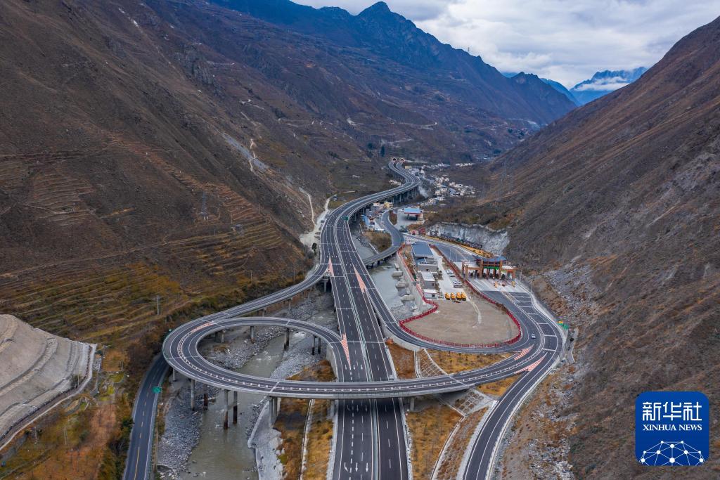 這是2020年12月20日拍攝的汶馬高速桃坪互通(無(wú)人機(jī)照片)。新華社發(fā)(阿壩州委宣傳部供圖)