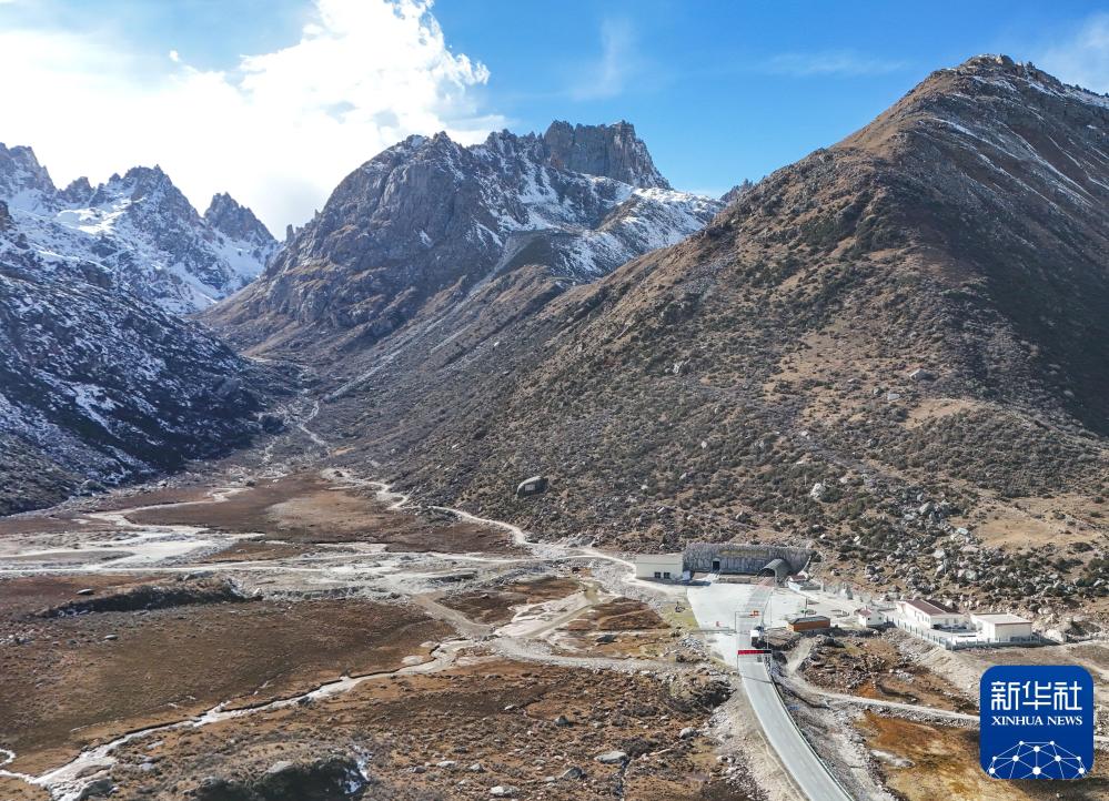 這是2024年11月1日拍攝的317國(guó)道雀兒山隧道口(無(wú)人機(jī)照片)。新華社記者 王曦 攝