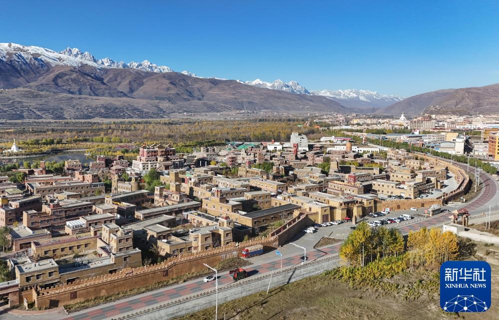 這是2024年10月29日在四川省甘孜藏族自治州拍攝的國(guó)道317公路,路邊是甘孜縣格薩爾王城景區(qū)(無(wú)人機(jī)照片)。新華社記者 王曦 攝
