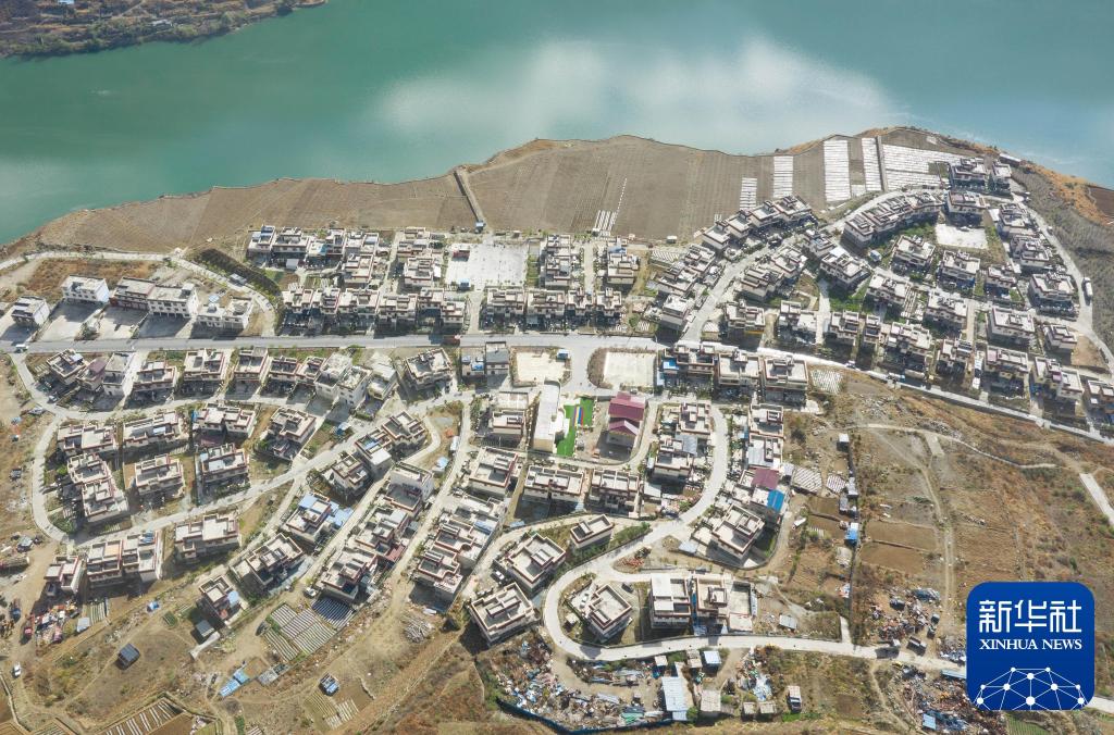 2019年4月16日,在川藏公路沿線(xiàn)的四川瀘定縣瀘橋鎮(zhèn)咱里村,移民新村面貌一新(無(wú)人機(jī)照片)。新華社記者 江宏景 攝