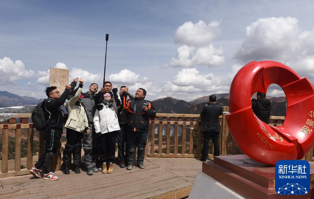 2021年5月2日,在西藏芒康縣拉烏山,騎行摩托的年輕人在一起合影。新華社記者 陳?ài)?攝