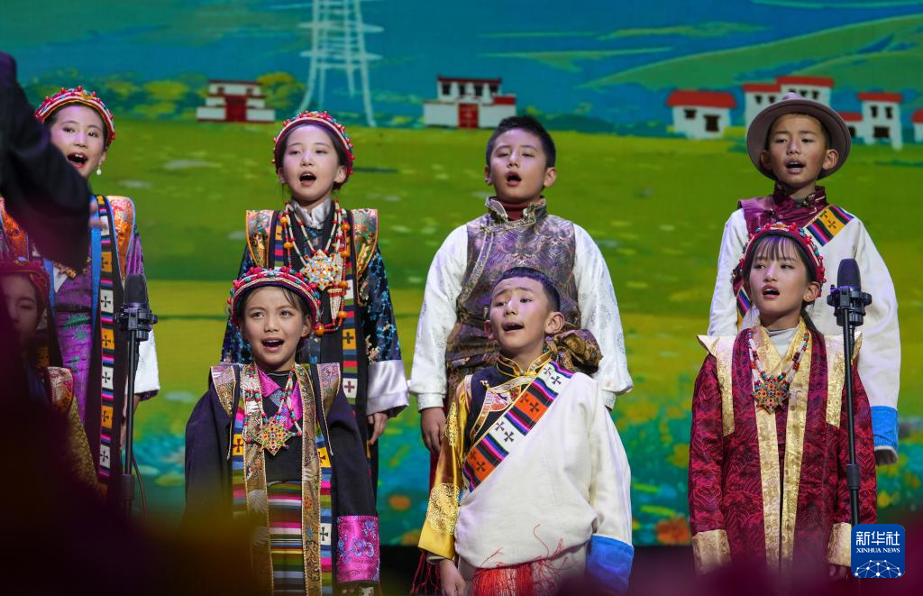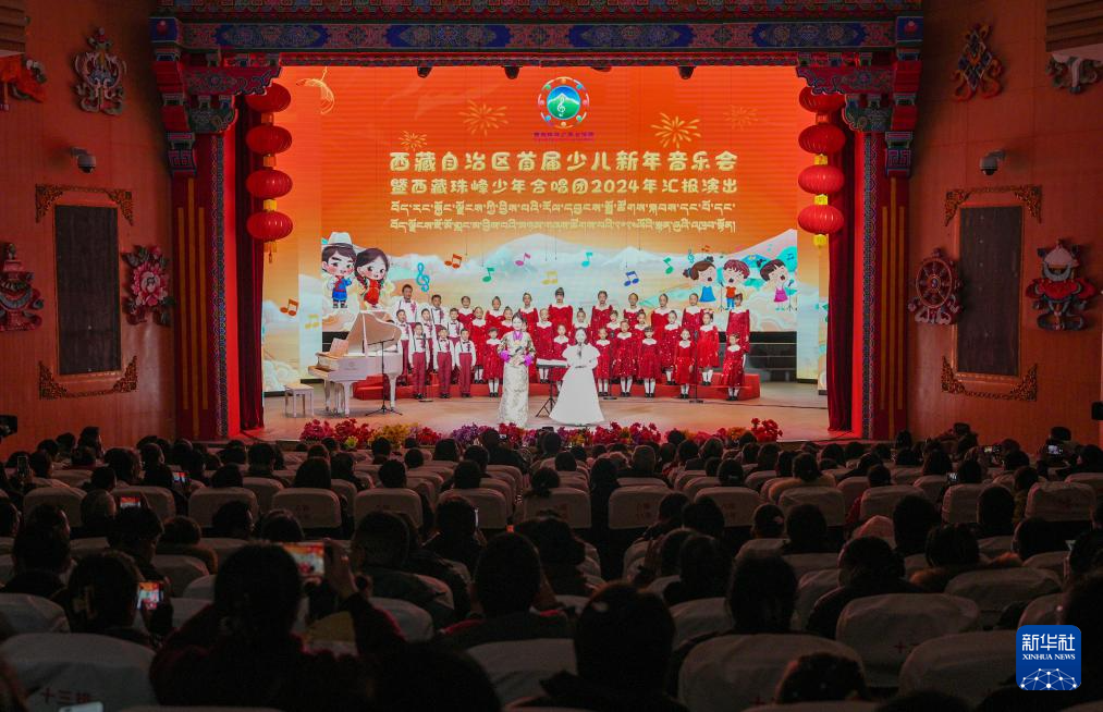 12月28日拍攝的西藏首屆少兒新年音樂(lè)會(huì)暨西藏珠峰少年合唱團(tuán)2024年匯報(bào)演出現(xiàn)場(chǎng)。