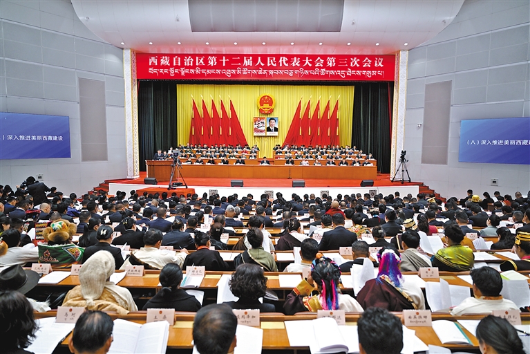 自治區(qū)十二屆人大三次會(huì)議開幕會(huì)現(xiàn)場。記者 旦增西旦 攝