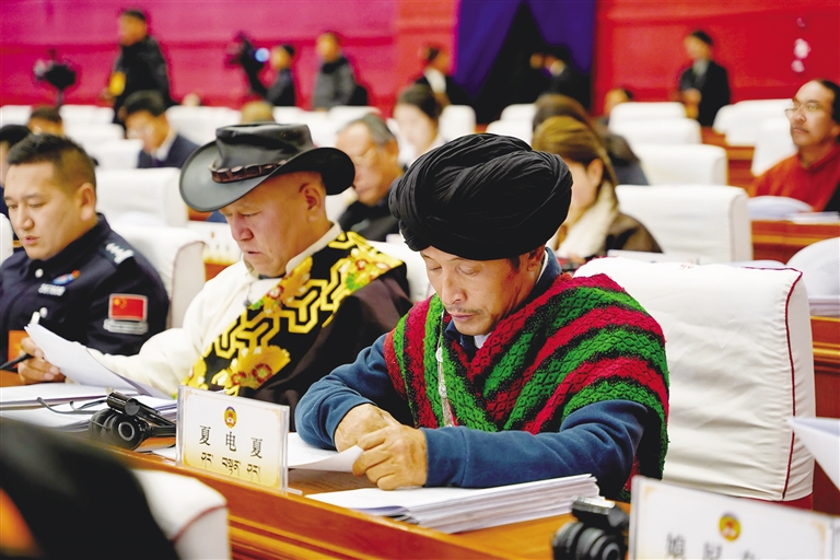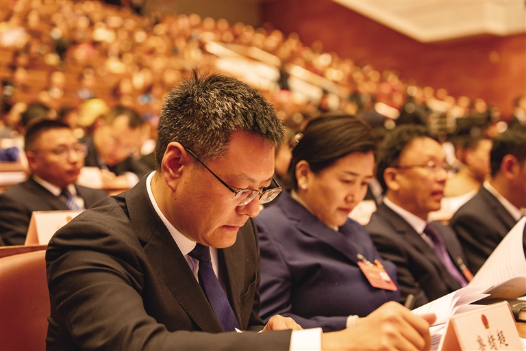 與會人員認真聆聽政府工作報告。