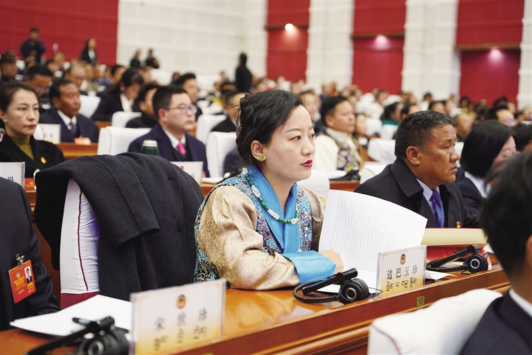 會議現(xiàn)場,一組組數(shù)據(jù)彰顯發(fā)展成果、一個個成績令人備受鼓舞、一項項政策聚焦民生福祉、一個個舉措激發(fā)奮斗熱情。代表委員們?nèi)褙炞Ⅰ雎犝ぷ鲌蟾?,臺上報告擲地有聲、振奮人心,描繪著西藏發(fā)展的美好前景;臺下代表委員們認真傾聽、精神抖擻,展現(xiàn)出積極參與會議、共促發(fā)展的熱忱。手中的政府工作報告承載著過去一年的努力與收獲,代表委員們目光堅定,眼神中滿是對過往成績的認可和對未來發(fā)展的殷切期望。