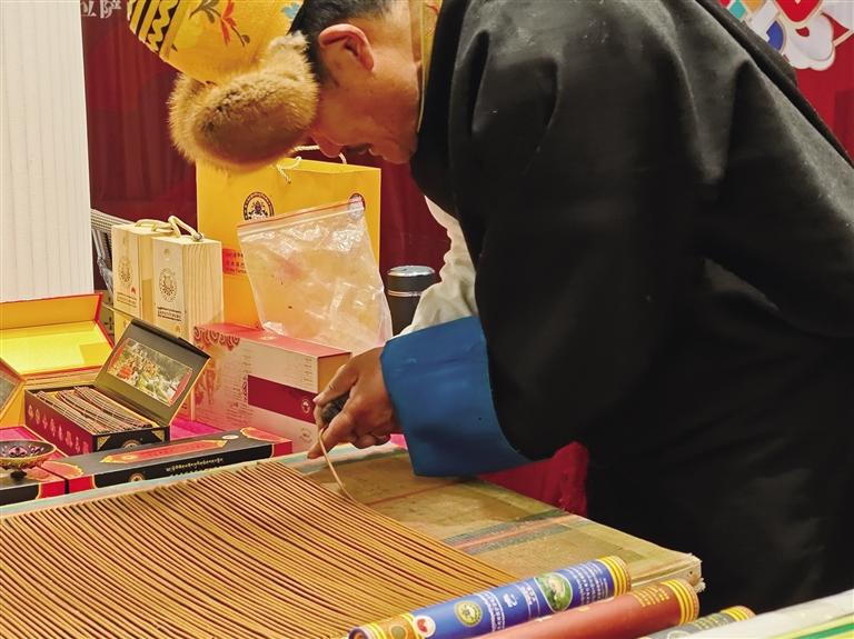 展銷活動現(xiàn)場,一股淡雅香氣彌漫開來,藏香展位上,線香靜靜燃燒。拉薩市級非物質文化遺產(chǎn)代表性傳承人加措正在制作藏香,吸引不少人駐足觀看。市民鄭先生說:“以前只見過藏香成品,第一次看制作過程,很驚喜。春節(jié)申遺成功后,非遺受關注更多,希望西藏非遺好物能被更多人了解!”