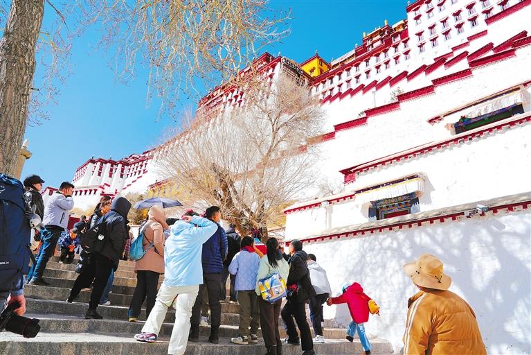 圖為春節(jié)假期期間,游客在參觀布達(dá)拉宮。本報記者 平措次仁 攝