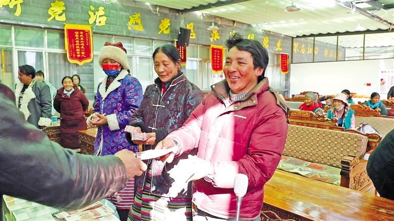 圖為噶爾縣獅泉河鎮(zhèn)加木村合作社分紅現(xiàn)場(chǎng)。 圖/文 記者 永青 達(dá)珍 洛桑旦增