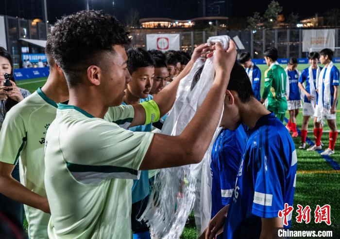 18日晚的香港西沙GO PARK球場,一場“跨越山海”的足球比賽正在此間舉行,西藏青少年組成雪域雛鷹隊與香港東方體育會足球隊U16隊在綠茵場上以球會友。