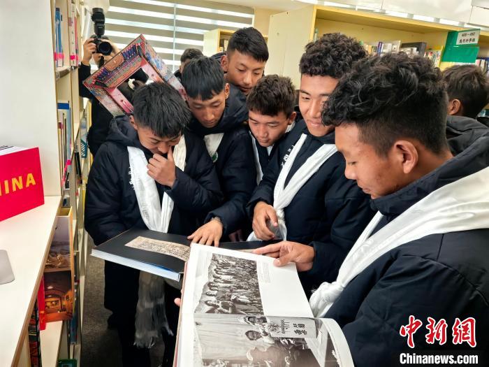 2月20日,參加“跨越山海 以球會友”藏港青少年足球交流活動的西藏自治區(qū)青少年在香港中華基金會中學(xué)圖書館翻閱介紹西藏的圖冊。 中新社記者 劉大煒 攝