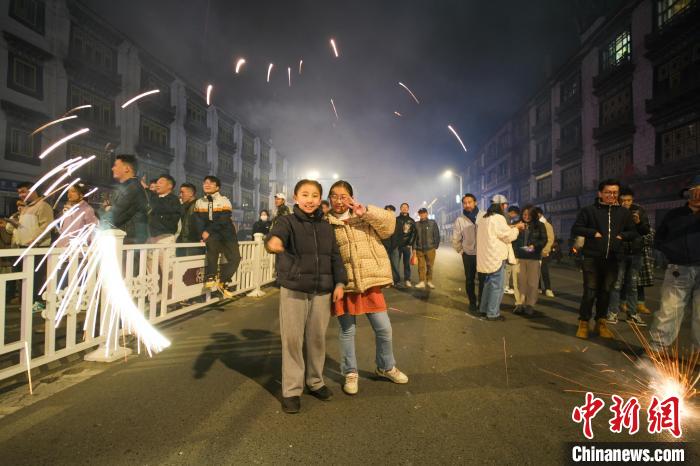藏歷新年是西藏傳統(tǒng)民俗活動,也是中國國家級非物質(zhì)文化遺產(chǎn)。2月27日,西藏迎來一年一度的藏歷新年古突夜(類似春節(jié)的除夕),如今過古突夜,西藏民眾在點燃火把的同時,也會燃放煙花,古城拉薩煙花璀璨。圖為2月27日晚,拉薩當?shù)孛癖娕c游客等在街頭共同慶祝藏歷木蛇新年的到來。中新社記者 江飛波 攝