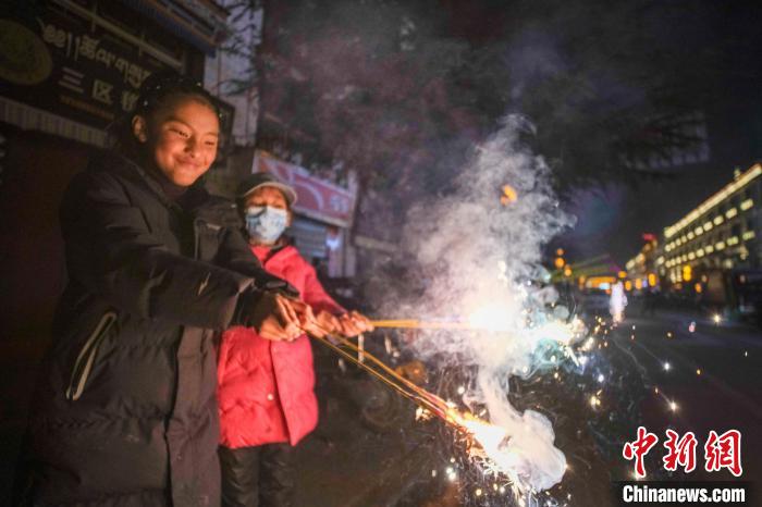 藏歷新年是西藏傳統(tǒng)民俗活動,也是中國國家級非物質(zhì)文化遺產(chǎn)。2月27日,西藏迎來一年一度的藏歷新年古突夜(類似春節(jié)的除夕),如今過古突夜,西藏民眾在點燃火把的同時,也會燃放煙花,古城拉薩煙花璀璨。圖為2月27日晚,孩子們在拉薩街頭燃放煙花,慶祝藏歷新年的到來。中新社記者 江飛波 攝