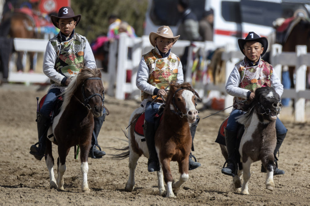 來(lái)自西藏自治區(qū)民族傳統(tǒng)馬術(shù)隊(duì)的騎手們