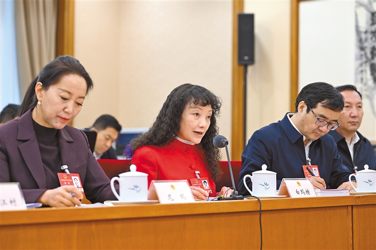 西藏全國人大代表在西藏代表團會議上發(fā)言。記者 旦增西旦 攝