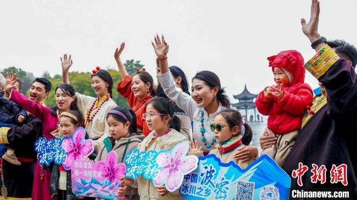 活動當天,身著彩云紋藏裝的波密兒女踏歌而來,沿著斷橋、雷峰塔等西湖文化地標,開啟流動的藝術巡演。藏式廣袖輕揚間掠過湖光,自發(fā)加入的游客與藏族演員即興共舞,在千年勝景中勾勒出民族交往交流交融的動人圖景?;顒蝇F場,熱情的藏族姑娘、藏族小伙為參與互動的游客送上“桃花氣球”和文創(chuàng)禮品,將高原春日的印記留在江南水岸。