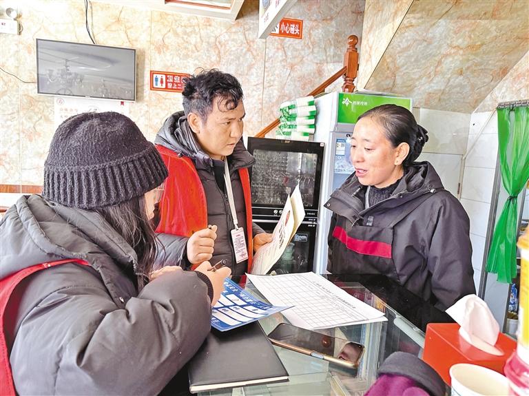 拉薩市城關(guān)區(qū)八一街道當(dāng)熱社區(qū)組織開展食品安全隱患排查工作。這是工作人員在仔細(xì)檢查商戶營(yíng)業(yè)執(zhí)照、食品衛(wèi)生許可證和健康證等持證情況。記者 王敏 攝