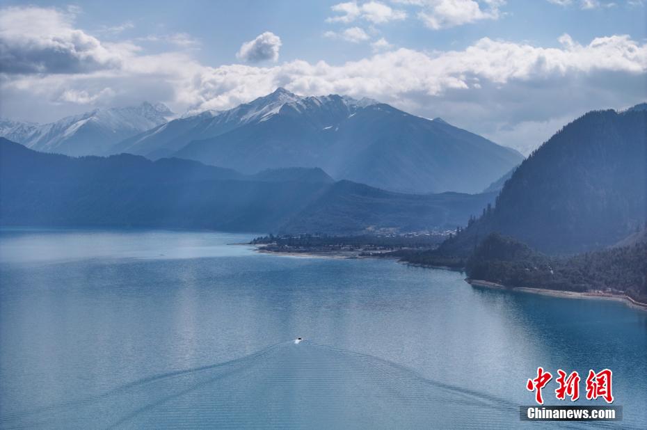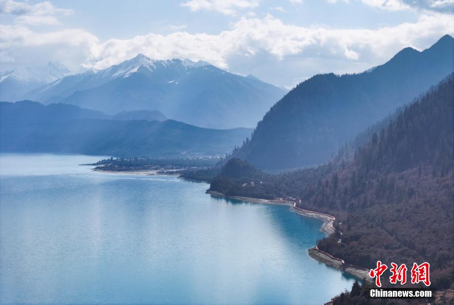 3月30日,航拍巴松措春日風(fēng)景。巴松措又名錯(cuò)高湖,位于西藏自治區(qū)林芝市工布江達(dá)縣,是西藏首個(gè)自然風(fēng)景類國(guó)家5A級(jí)旅游風(fēng)景區(qū)。從空中俯瞰巴松措,碧藍(lán)的湖水被雪山、森林環(huán)繞,宛如鑲嵌在群山間的“藍(lán)寶石”。(無(wú)人機(jī)照片)中新社記者 馬銘言 攝