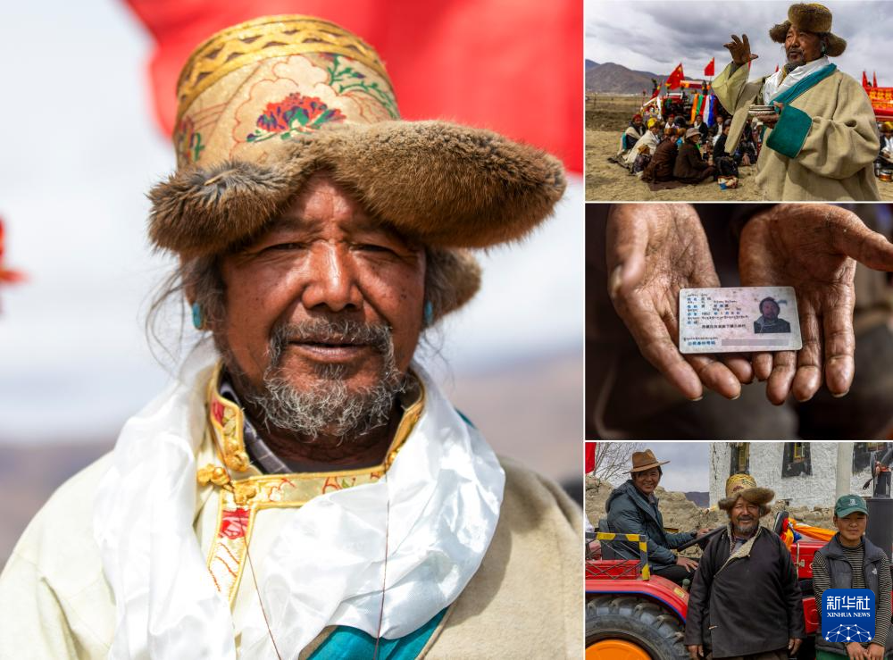 右中:這是某朗桑姆老人的身份證(3月20日,新華社記者丁增尼達(dá)攝)。