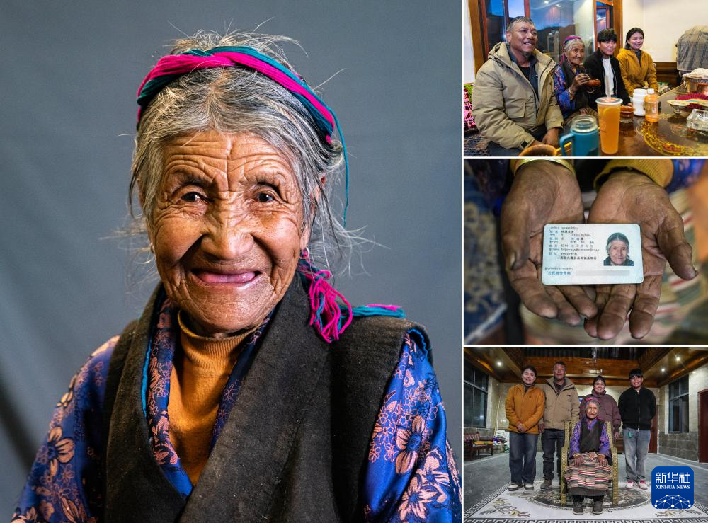 右下:索扎老人和家人合影(3月20日,新華社記者丁增尼達(dá)攝)。
