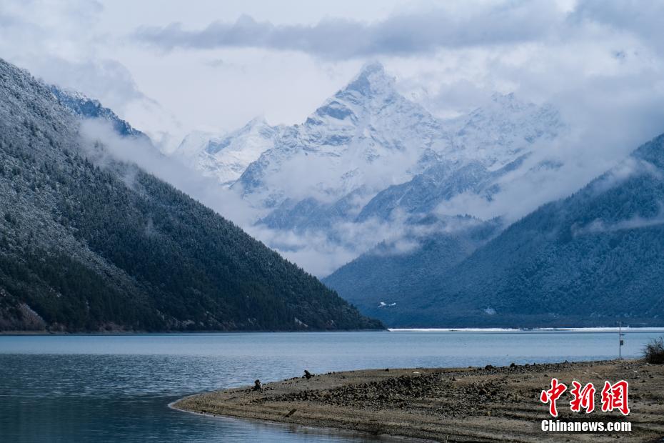 巴松錯位于西藏林芝工布江達縣境內(nèi),地處巴河上游的高山峽谷中,是西藏首個自然風景類國家5A級旅游景區(qū)。4月5日,巴松錯迎來一場春雪,雪后四周原始森林猶如蒙上潔白面紗,湖面宛如一面藍寶石鑲嵌其中,風光如畫。圖為4月5日,巴松錯與遠處的雪山風光。中新社記者 江飛波 攝