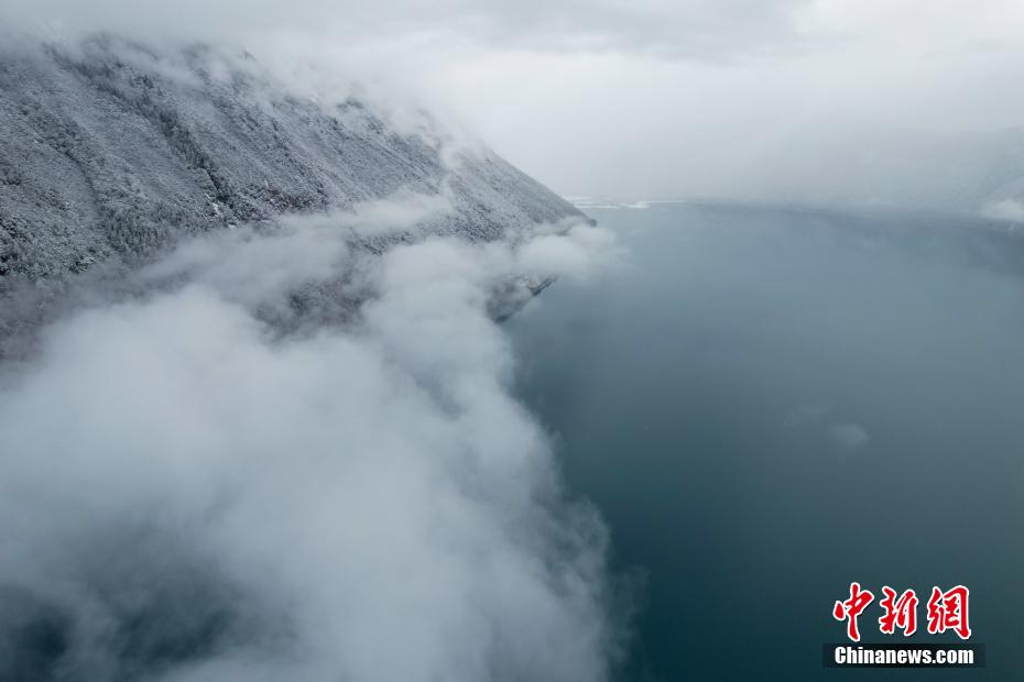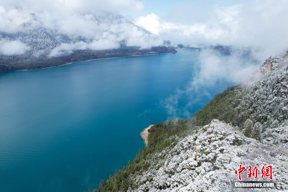巴松錯位于西藏林芝工布江達縣境內(nèi),地處巴河上游的高山峽谷中,是西藏首個自然風景類國家5A級旅游景區(qū)。4月5日,巴松錯迎來一場春雪,雪后四周原始森林猶如蒙上潔白面紗,湖面宛如一面藍寶石鑲嵌其中,風光如畫。圖為4月5日,雪后巴松錯四周云霧繚繞,猶如仙境。(無人機畫面)中新社記者 江飛波 攝