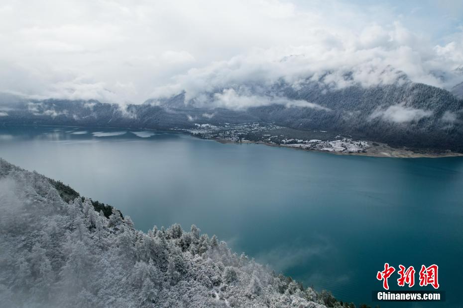 巴松錯位于西藏林芝工布江達縣境內(nèi),地處巴河上游的高山峽谷中,是西藏首個自然風景類國家5A級旅游景區(qū)。4月5日,巴松錯迎來一場春雪,雪后四周原始森林猶如蒙上潔白面紗,湖面宛如一面藍寶石鑲嵌其中,風光如畫。圖為4月5日,巴松錯與四周的原始森林和雪山風光。中新社記者 江飛波 攝