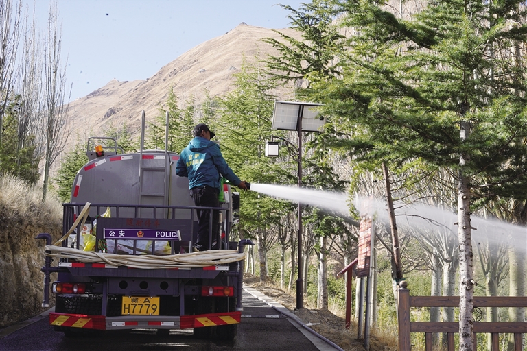 給南山樹木澆水。記者 余書冉 攝